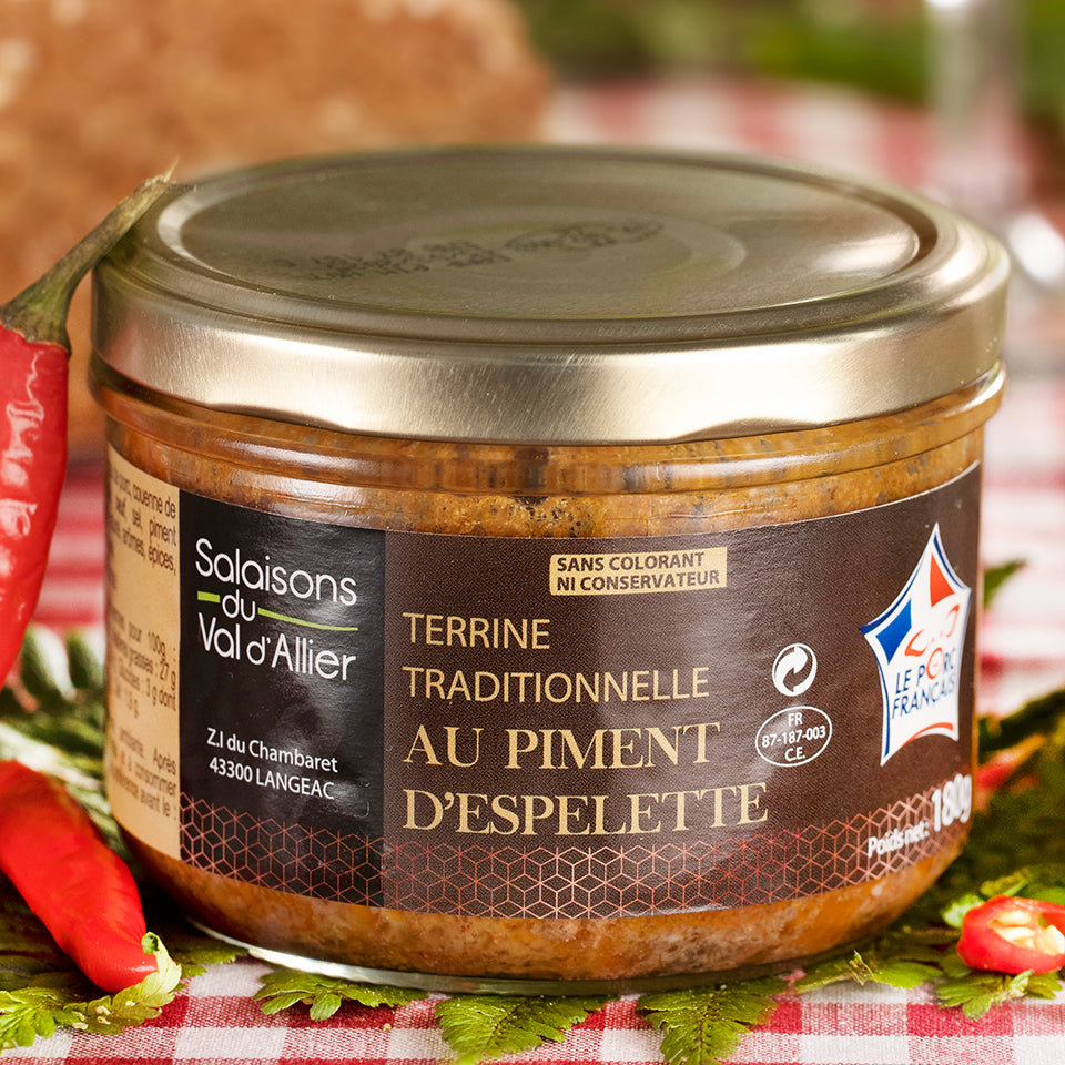 Unsere Terrine mit Chili begeistert mit einer feurigen Schärfe und herzhaften Tiefe. Die ausgewogene Mischung aus Schweineleber, Schweinefett und Espelette-Chili schafft ein harmonisches Gleichgewicht zwischen Würze und Intensität. Das Weizenmehl sorgt für eine angenehme Konsistenz, während das in Frankreich gewonnene Schweinefleisch die Authentizität dieses köstlichen Delikatessprodukts garantiert. Perfekt für alle, die die französische Küche mit einem scharfen Twist erleben möchten!